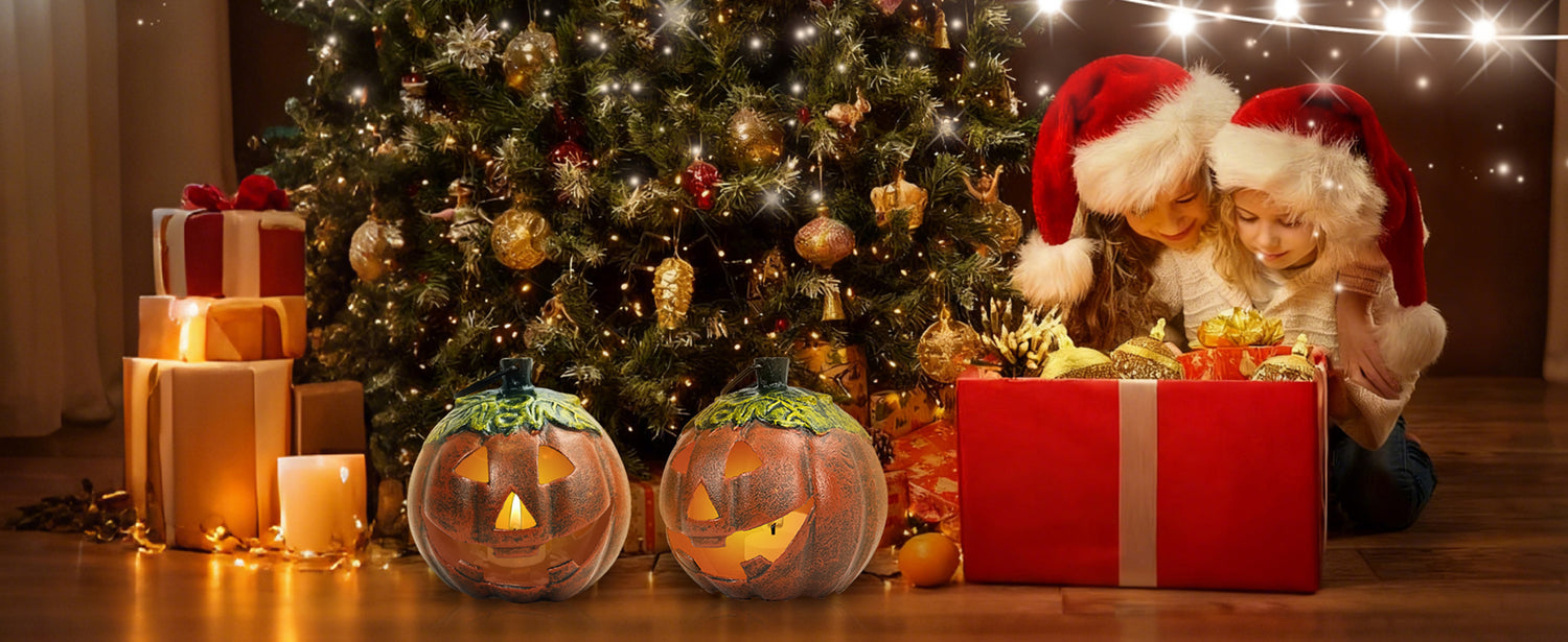 Linton Arts 2-Pack Cast Iron Jabbering Jack Trivets for Hot Dishes - Heat Resistant Trivet for Hot Pots & Pans, Festive Pumpkin Trivets & Pumpkin Kitchen Decor (Christmas Themed)
