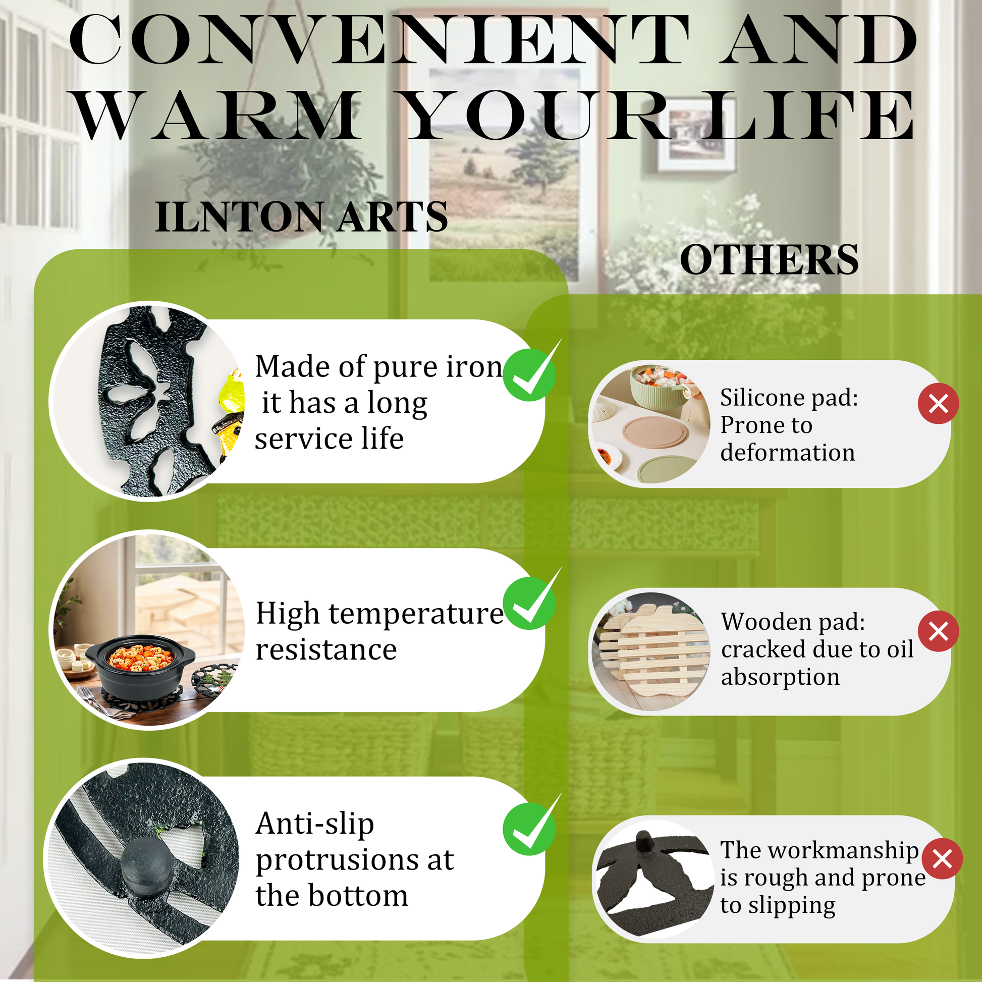 🛡️ 【Built to Last for Seasons】Crafted from high-quality cast iron, this trivet set won't warp, crack, or fade. It's a timeless kitchen companion that will bring Christmas cheer for years to come.