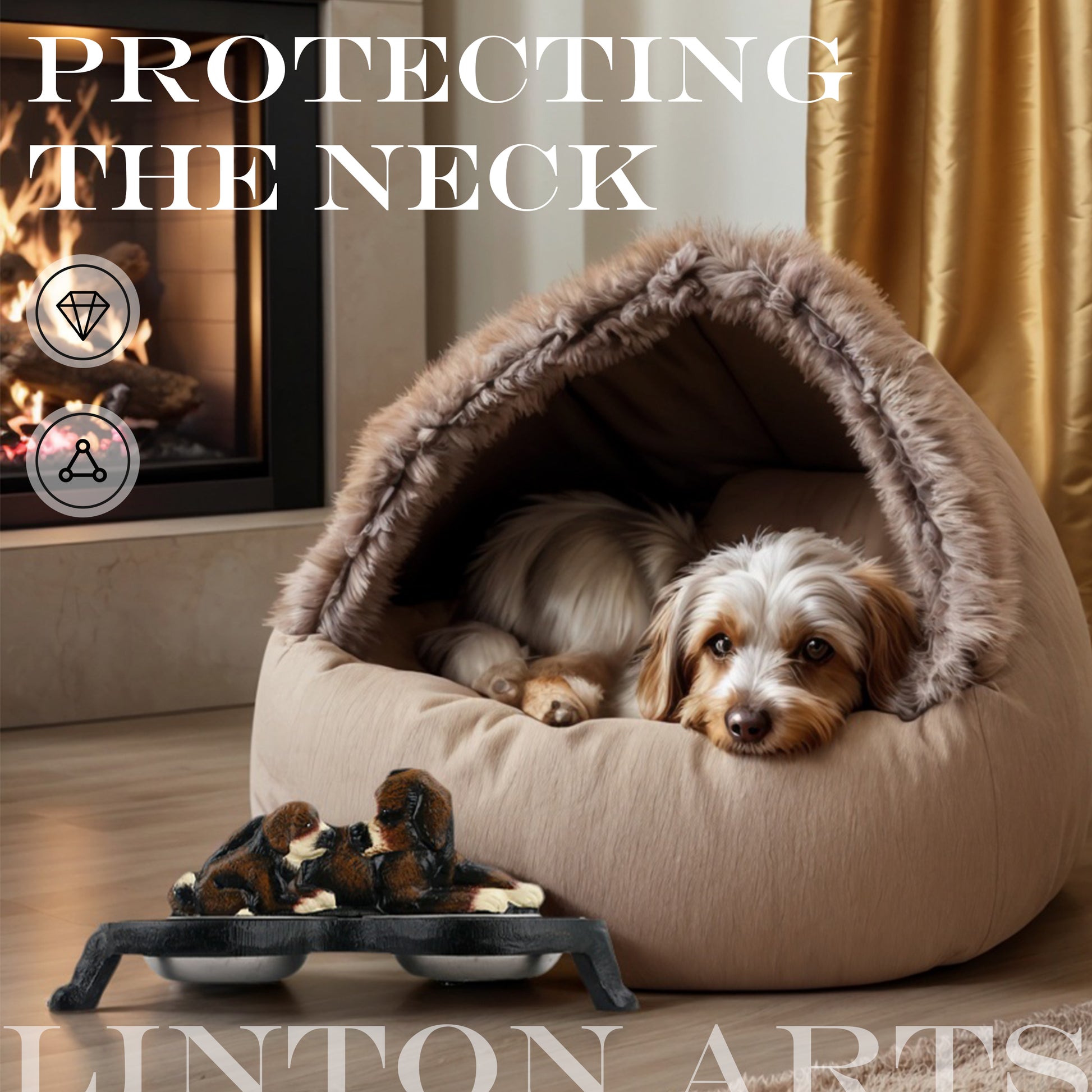 Linton Arts Cast Iron Dog Bowl Stand with 2 Stainless Steel Bowls - Heavy Duty Elevated Dog Feeder for Large Breeds, Non-Slip Chew-Proof Pet Food & Water Dish, Cute Paw Design (12"L x 6"W)