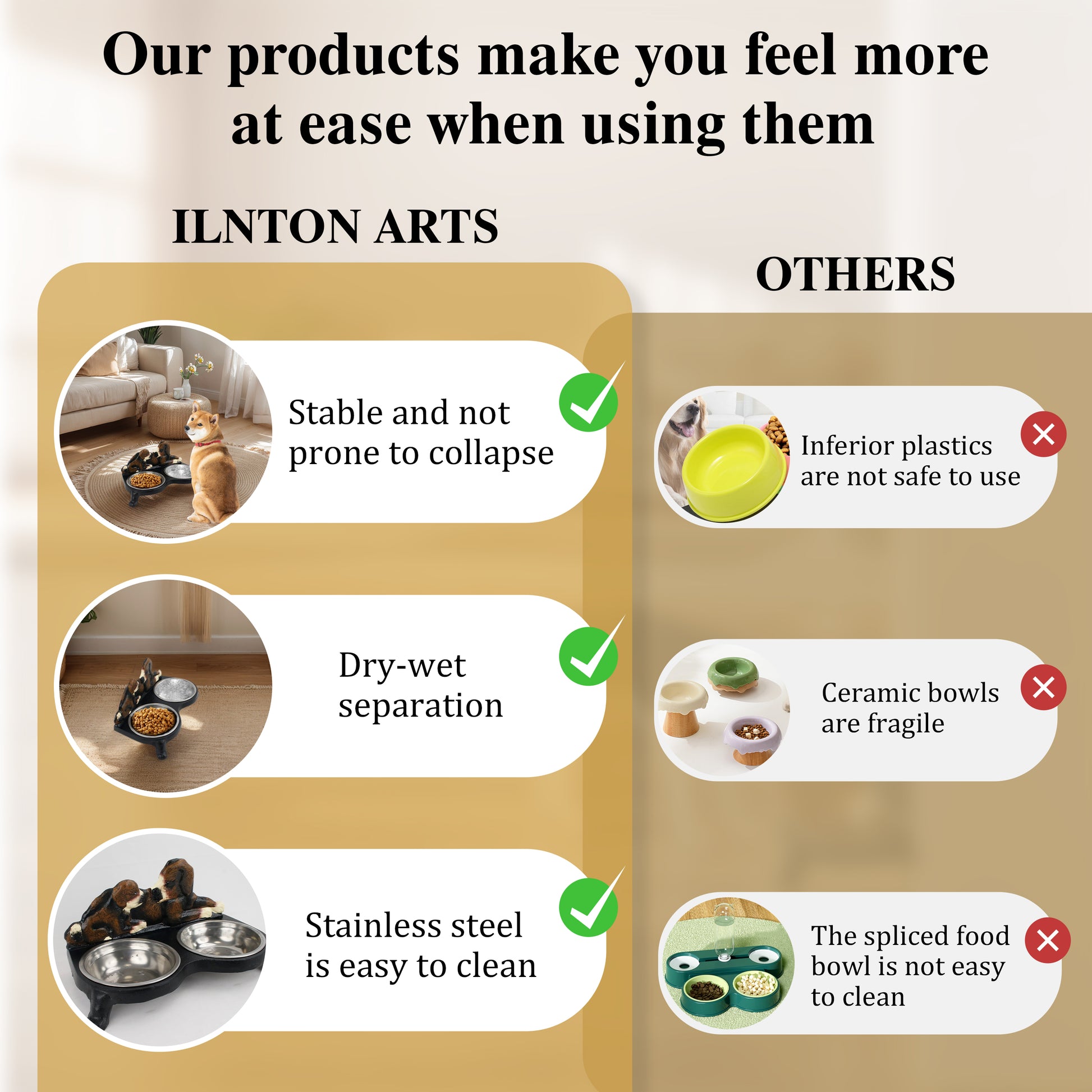 🛡️ 【Cast Iron Base + Stainless Steel Bowls】