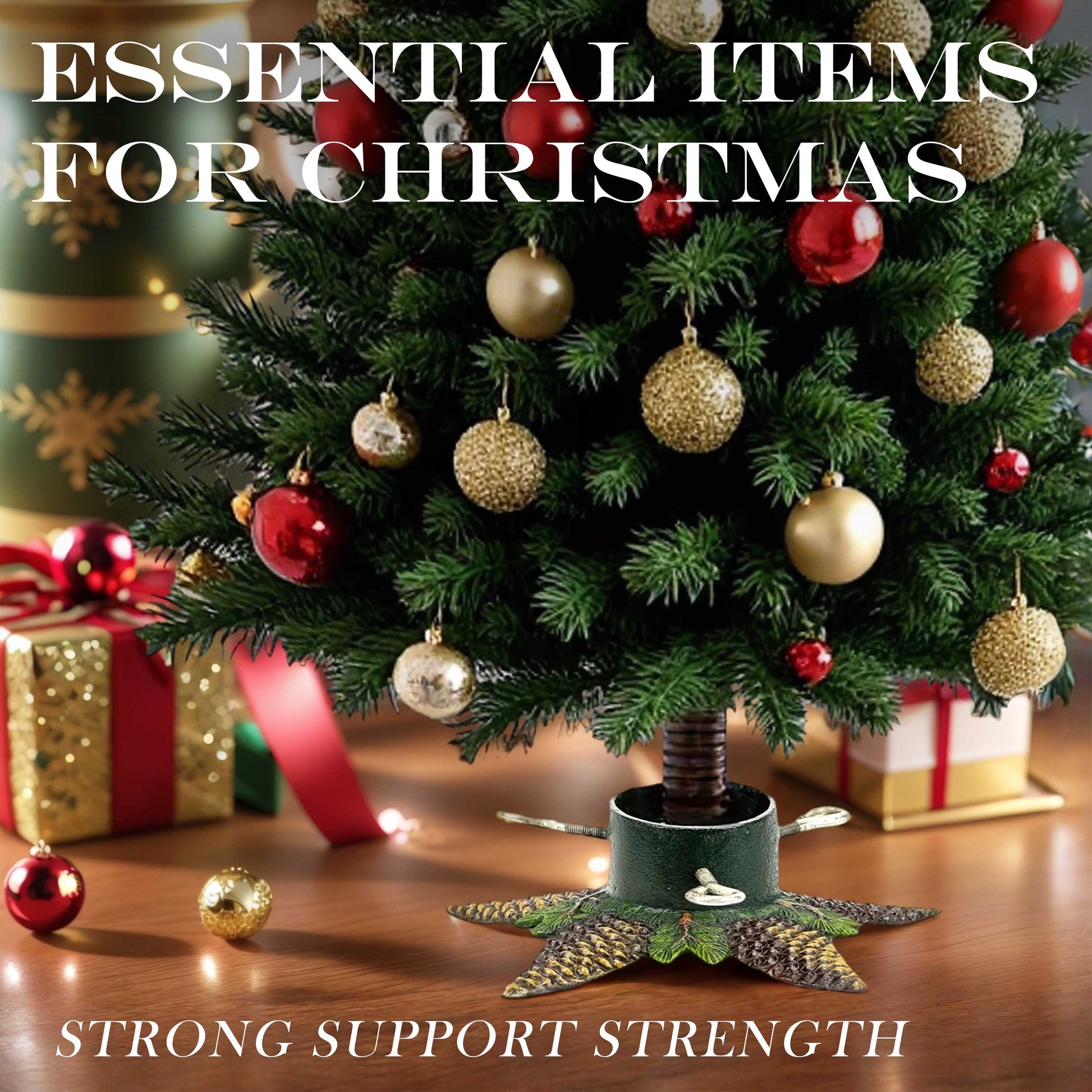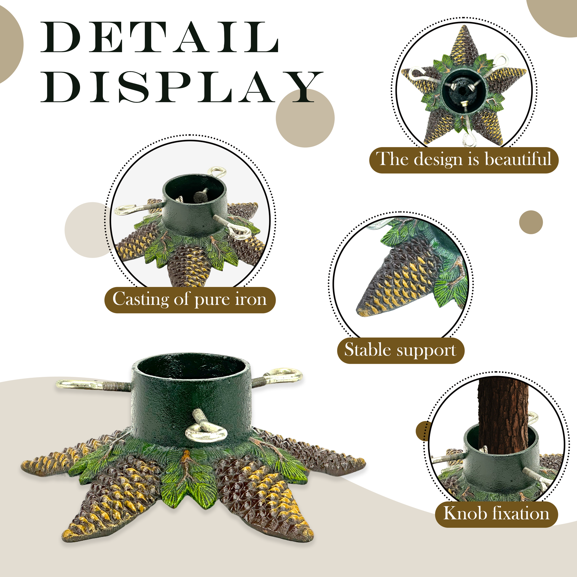 Linton Arts Christmas Tree Stand for Real Trees, Cast Iron Artificial Christmas Tree Stand, Holds Up to 8ft Trees with 4" Trunks, Pinecone-designed Christmas Tree Holder Base for Holiday Decor