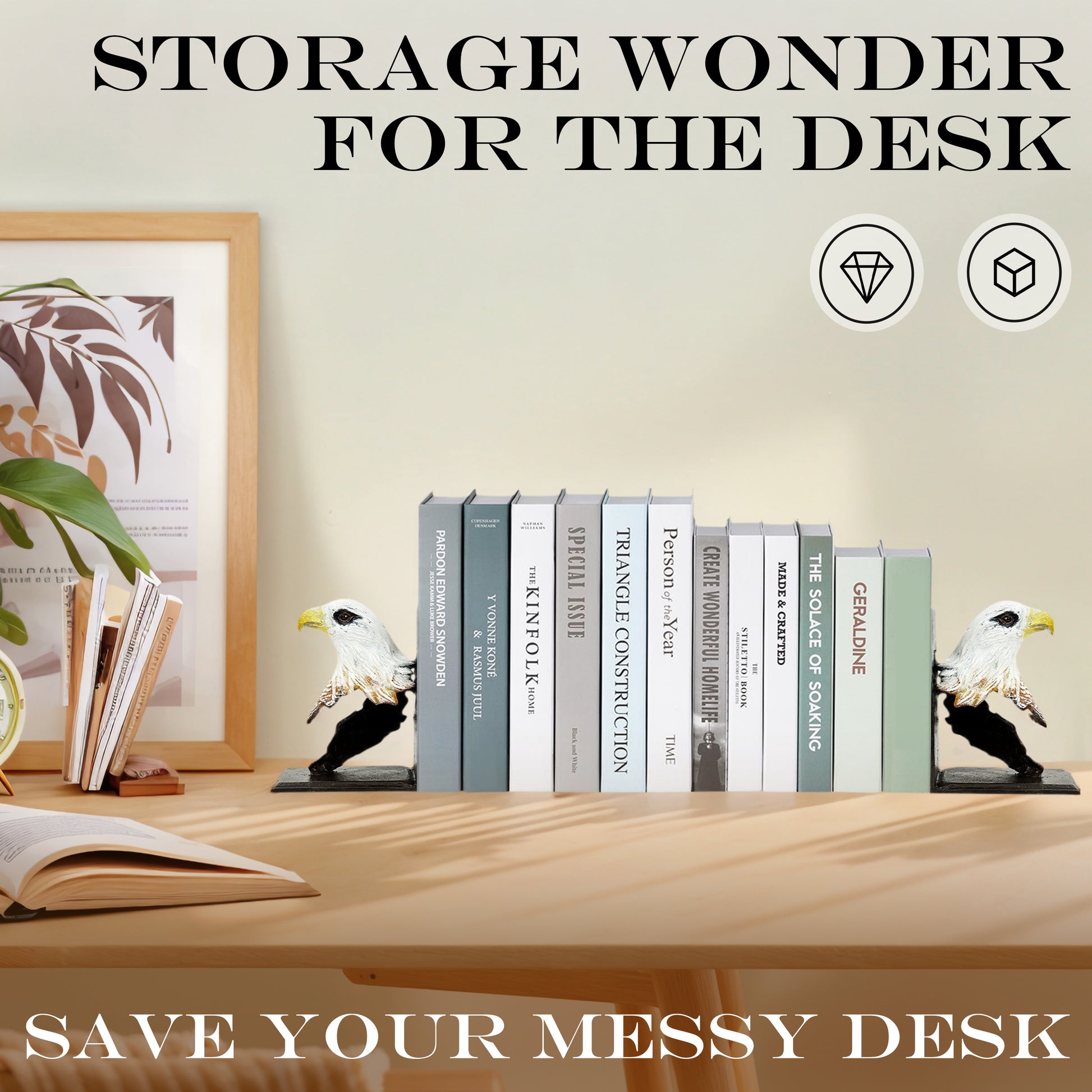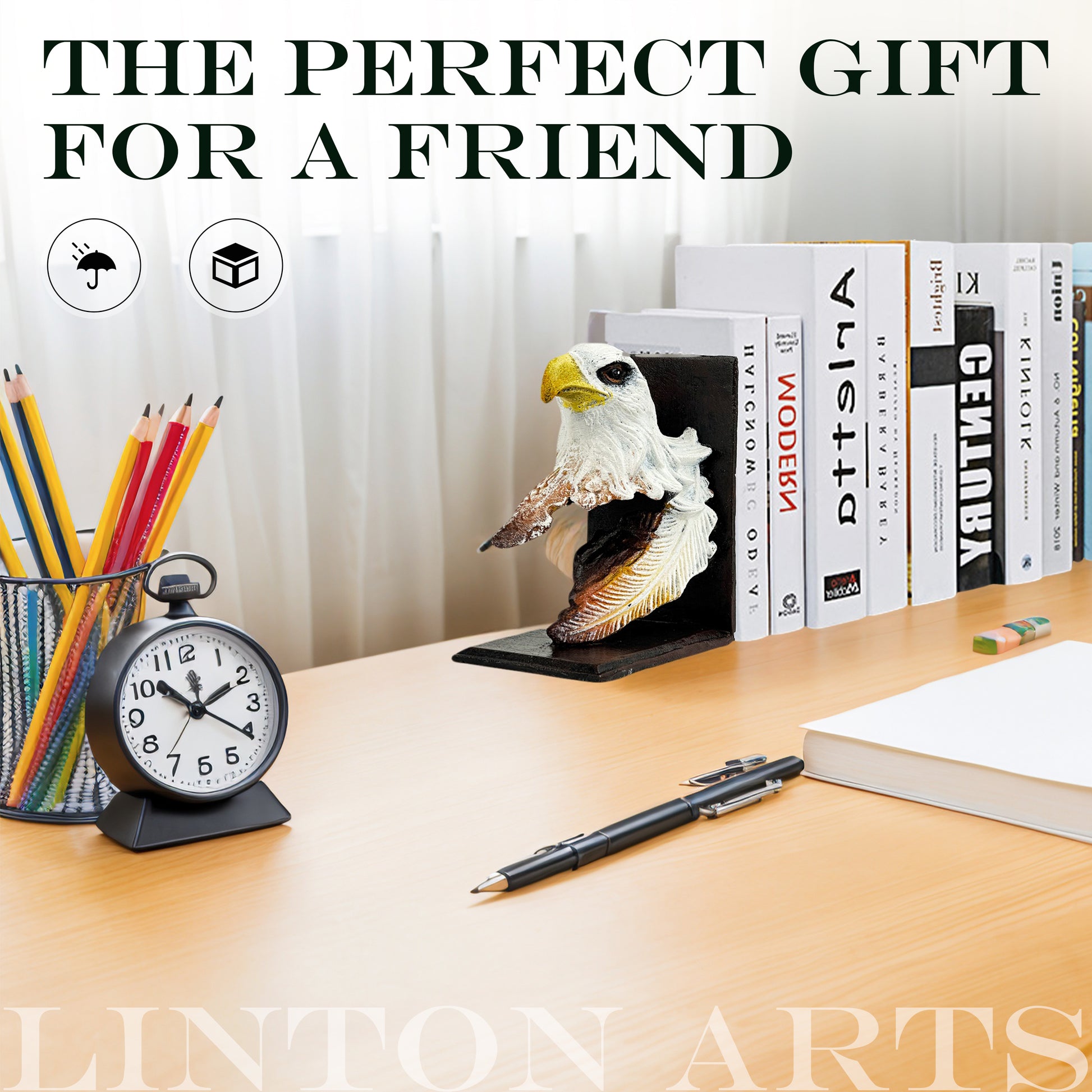 Linton Arts Metal Bookends for Shelves – Heavy Duty Cast Iron Bald Eagle Bookend, Decorative Book Stopper for Home Office, 1pc Single Bookend (Bookshelf Decor)