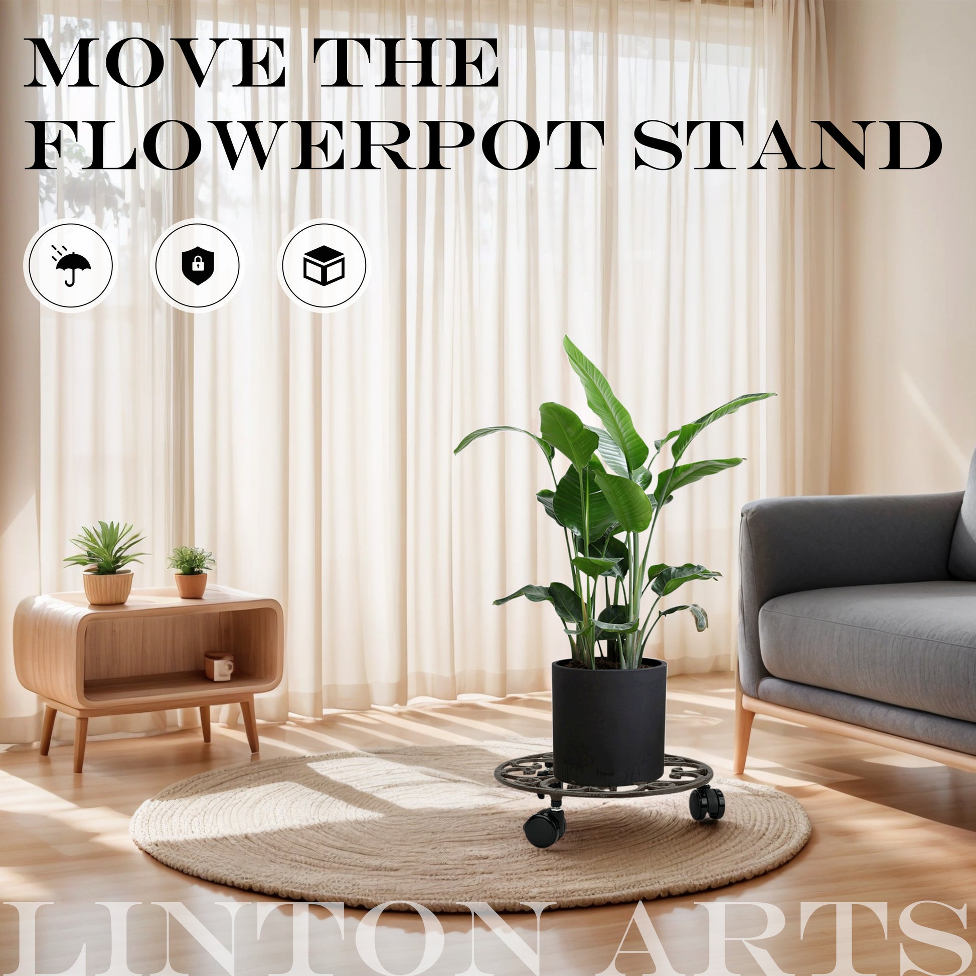 Linton Arts Wheeled Plant Caddy, 10.7 Inch Anti-Rust Cast Iron Heavy Duty Plant Caddy for Small Potted Plants, Rustic Indoor Plant Stands for Living Room, Courtyard,160 lbs Capacity, No Assembly Required
